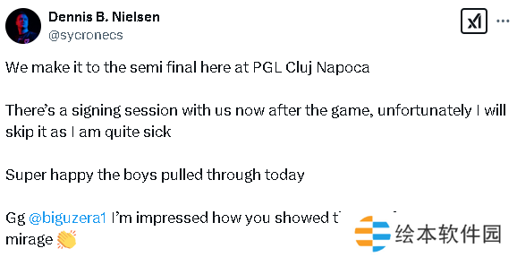 MOUZ教练sycrone:我们成功晋级PGL 克卢日-纳波卡站半决赛。比赛结束后我们有一个签名会,遗憾的是我将缺席,因为我身体不太舒服。