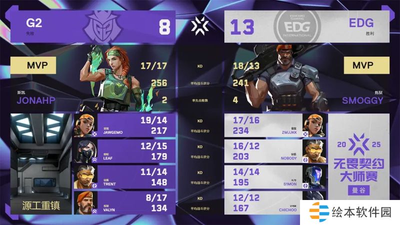 第二张地图源工重镇,EDG 13:8 G2,MVP给到了Smoggy选手。