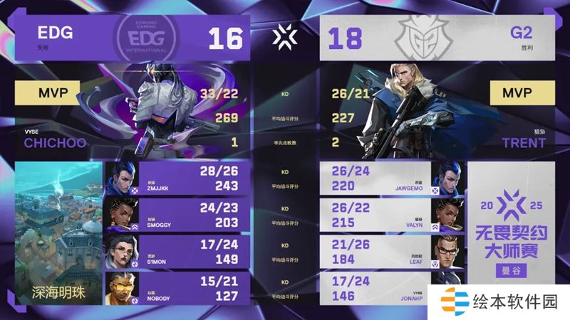 2025 VCT 曼谷大师赛,瑞士轮第二轮1-0组,EDG在先丢一图的情况下,完成了让一追二的逆转,击败了对手G2,晋级四强!
