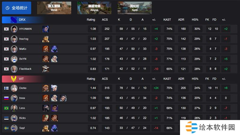 图三霓虹町,上半场在取得6:2的比分优势后,DRX的选手开始接连“发病”,VIT也迅速反扑,上半场双方战平;下半场VIT拿下手枪局之后继续连拿3分,一波6:2率先拿到了赛点,而DRX艰难的将比分追至11:12之后,没能撑住最后一口气,我愿称之为“最伟大的赖着不走”,比分锁定在VIT 13:11 DRX。
