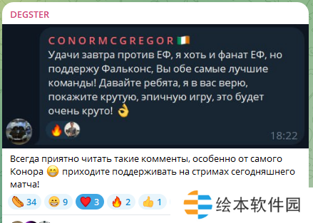 Falcons战队选手degster在个人频道晒出了前UFC羽量级、轻量级冠军康纳·麦格雷戈的留言: