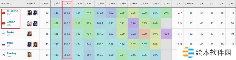 ACS平均战斗评分:CHICHOO、ZmjjKK位列前二