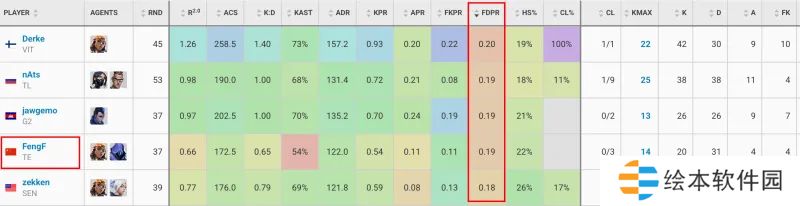 FDPR平均每回合首死:FengF位列第四(第四多)