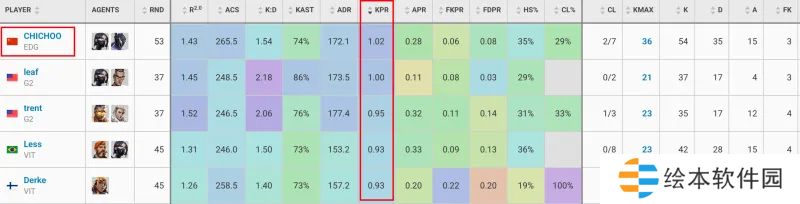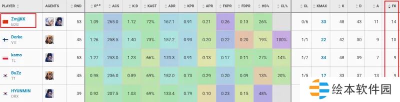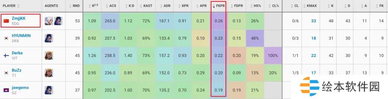 FKPR平均每回合首杀:ZmjjKK位列第一