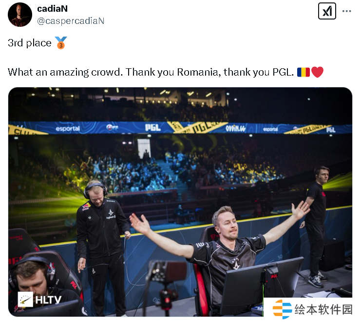 cadiaN:第三名。观众们都非常棒。感谢罗马尼亚,感谢PGL。