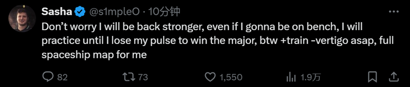 “别担心,我会回来的,即使我被下放,我也会努力训练,直到我失去脉搏,赢得Major的那一天。另外尽快用Train取代Vertigo,这才是我可以完全施展的地图。”