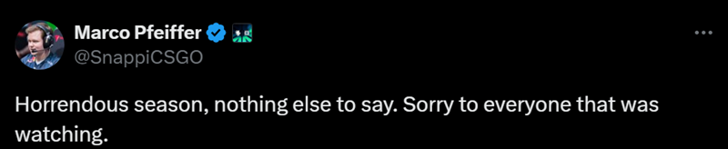 Snappi:“糟糕的赛季,除此之外没什么好说的。向观看比赛的人说声抱歉。”
