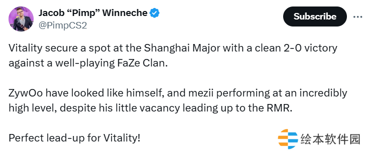 Vitality成为第二支晋级Major正赛的欧洲队伍。