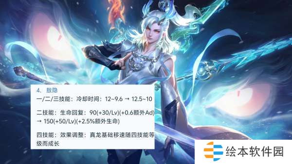 另外二技能的生命恢复在前期有增强,但是中后期削弱,生命回复基础数值提升,但是AD加成变成了额外生命值加成。