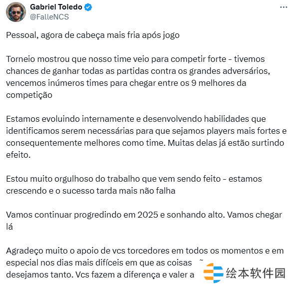 FURIA战队指挥FalleN就队伍被淘汰出局一事发表了自己的看法。在个人社交媒体账号上,巴西教父表示战队正在进步过程中,为队伍目前取得的成果感到自豪。