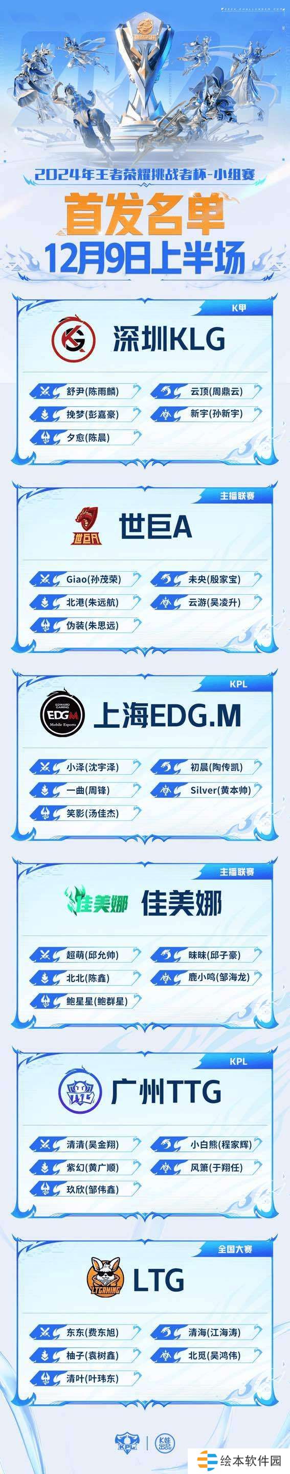2024年王者荣耀挑战者杯 小组赛W1D3【首发名单】送达 !